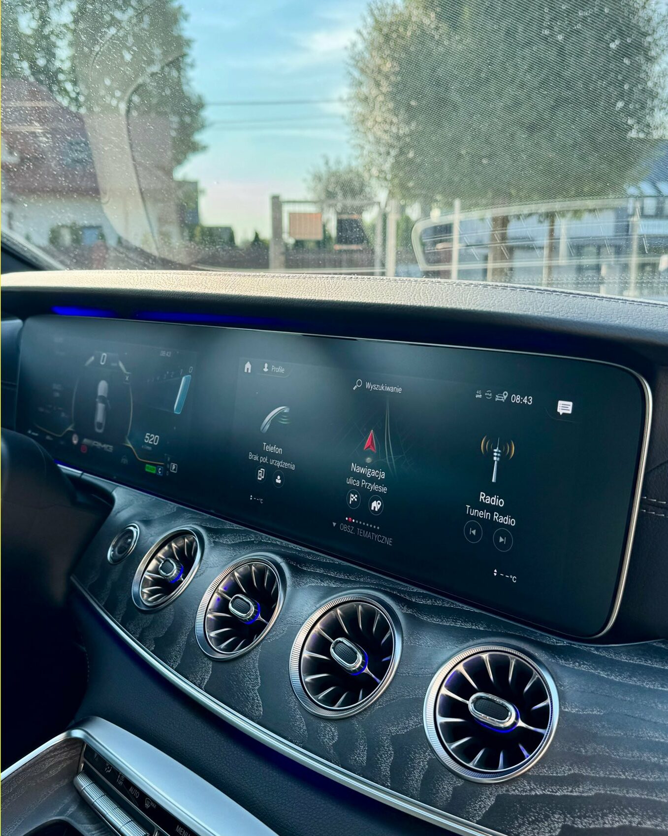 zabezpieczyliśmy duży ekran we wnętrzu auta folią ochronną PPF. działa tak jak szybka ochronna na telefon – żeby uniknąć rys i pęknięć