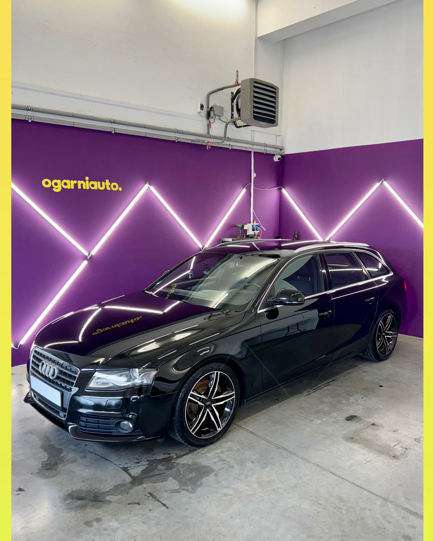 Właściciel Audi zostawił nam auto na 2 tygodnie, a sam wyjechał na urlop. My wypolerowaliśmy lakier na błysk i zabezpieczyliśmy ceramiką, a na lampy wjechała przyciemniająca folia PPF. W środku fura też przyszła pełny detailing z czyszczeniem, impregnacją tapicerki skórzanej i alcantary. Depresja pourlopowa, przy tak odpicowanym aucie? Nie ma takiej opcji! 😎